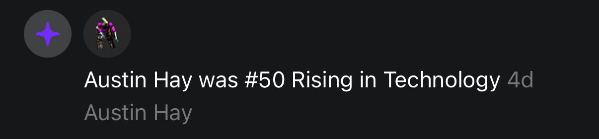 Happy Saturday, gang. Thank you to the 100s of new subscribers who joined us since last week. I broke into the rising technology category again this month all thanks to you guys. 🥹