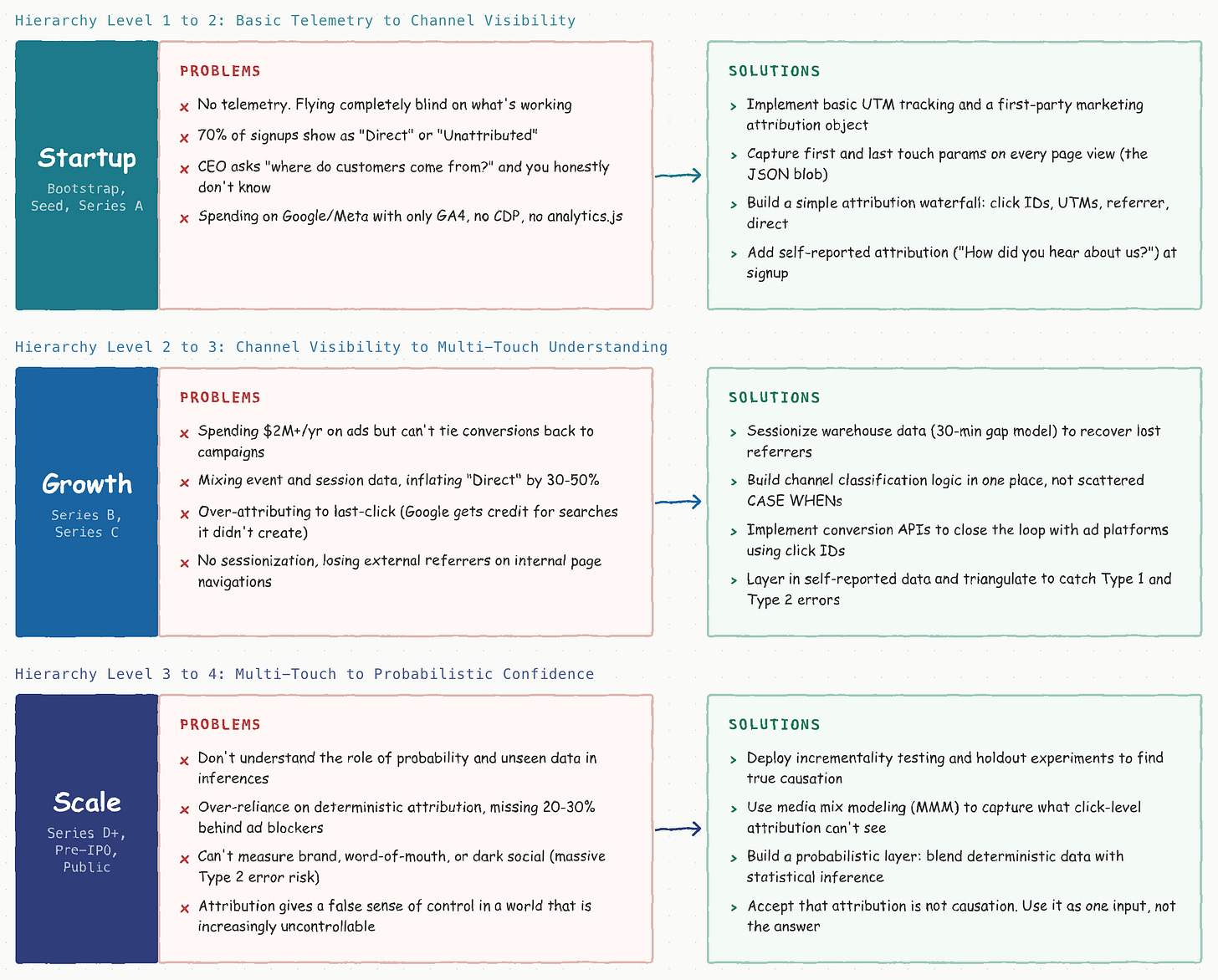 This lays out the problems companies should strive to solve at various company sizes and stages, and how they should consider marketing attribution as a salvo.