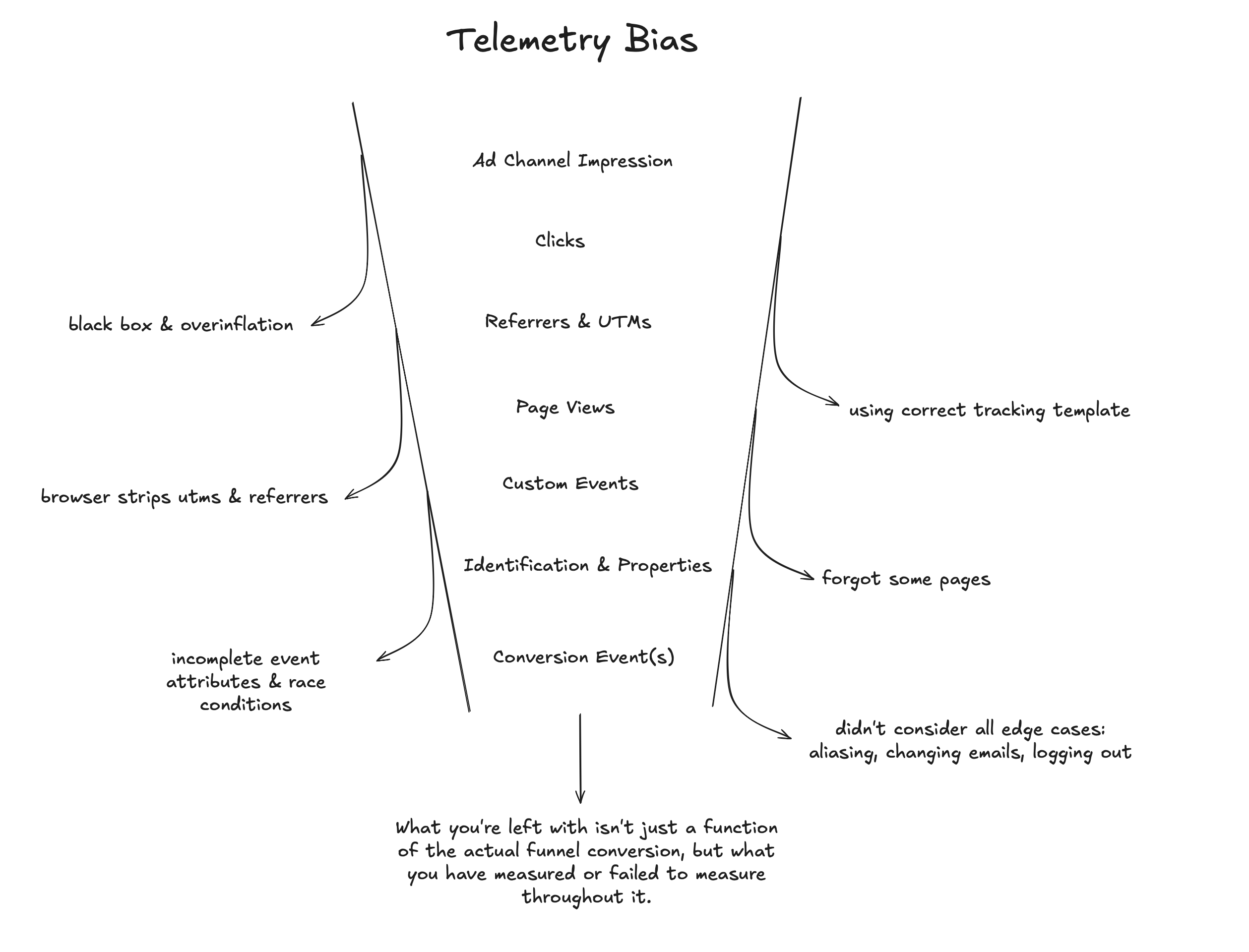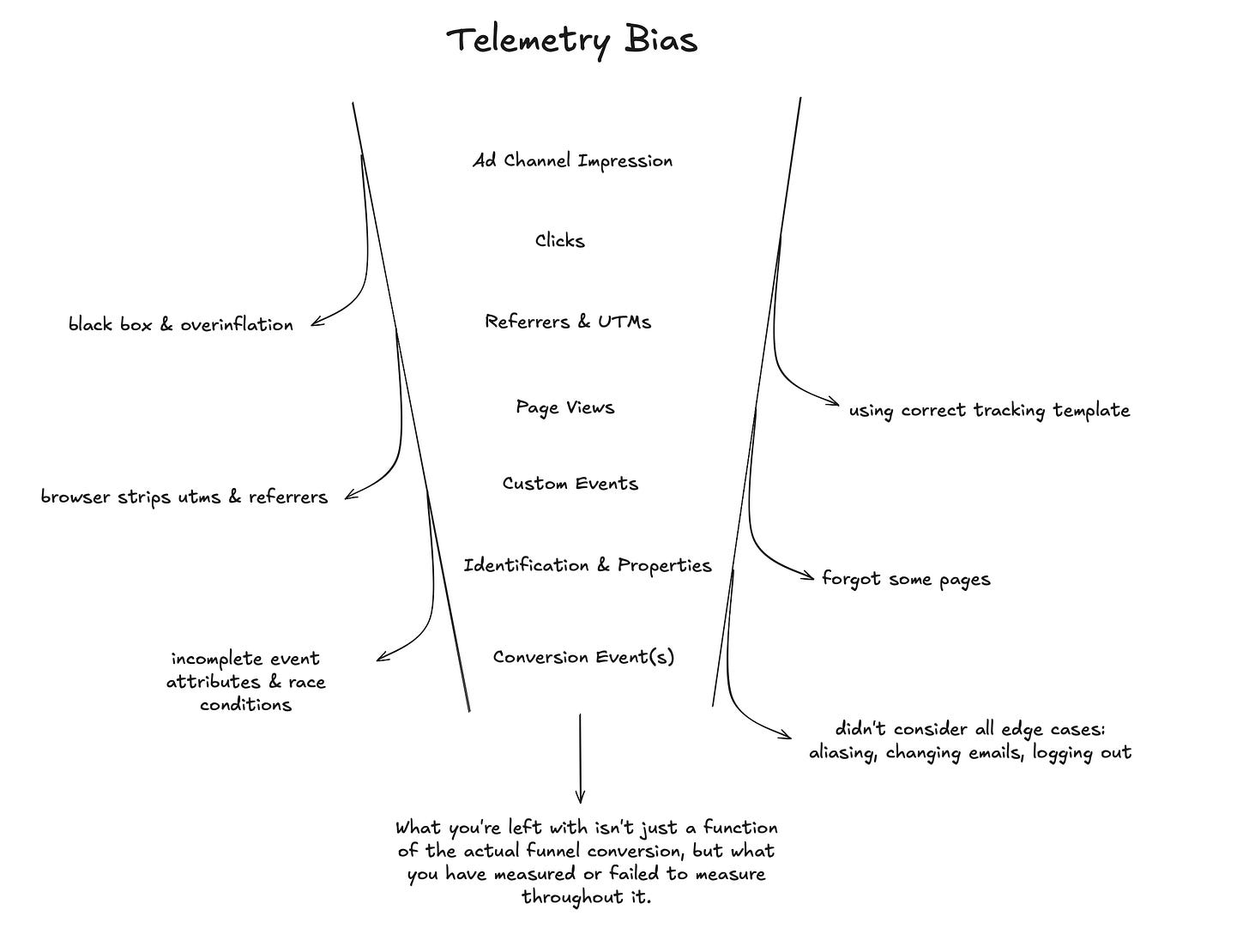 In a nutshell, telemetry bias is bias created by your valiant efforts to measure things. Because if you donât measure everything (very likely), youâll only know the results of what you measure. But what happens if you fail to measure an important signal? Then your data is telling you the wrong story. You might as well have flipped a coin.