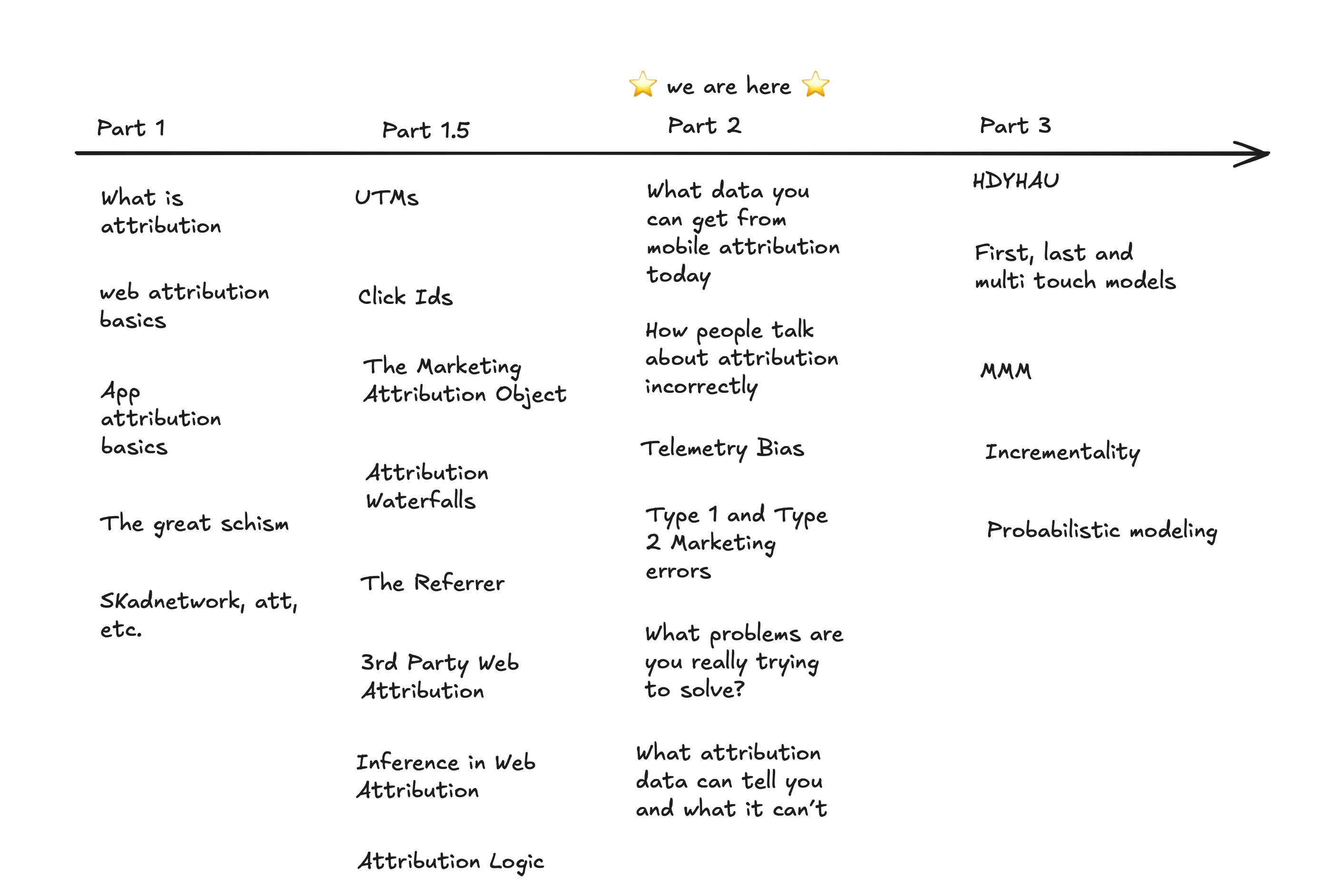 Today, we are going to go deeper into attribution. If you need a reminder of our journey so far: